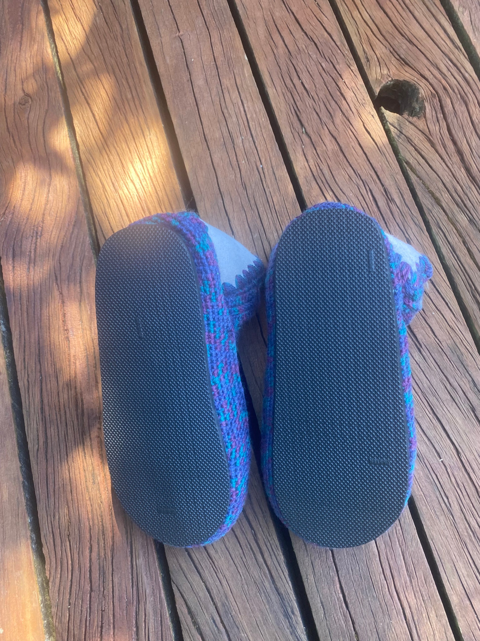 - Paua Shell - Classic tones of Pāua shell. This snuggly pair is made out of a multi wool thay shows blue, green and purple tones. This pair comes with a rubber sole.