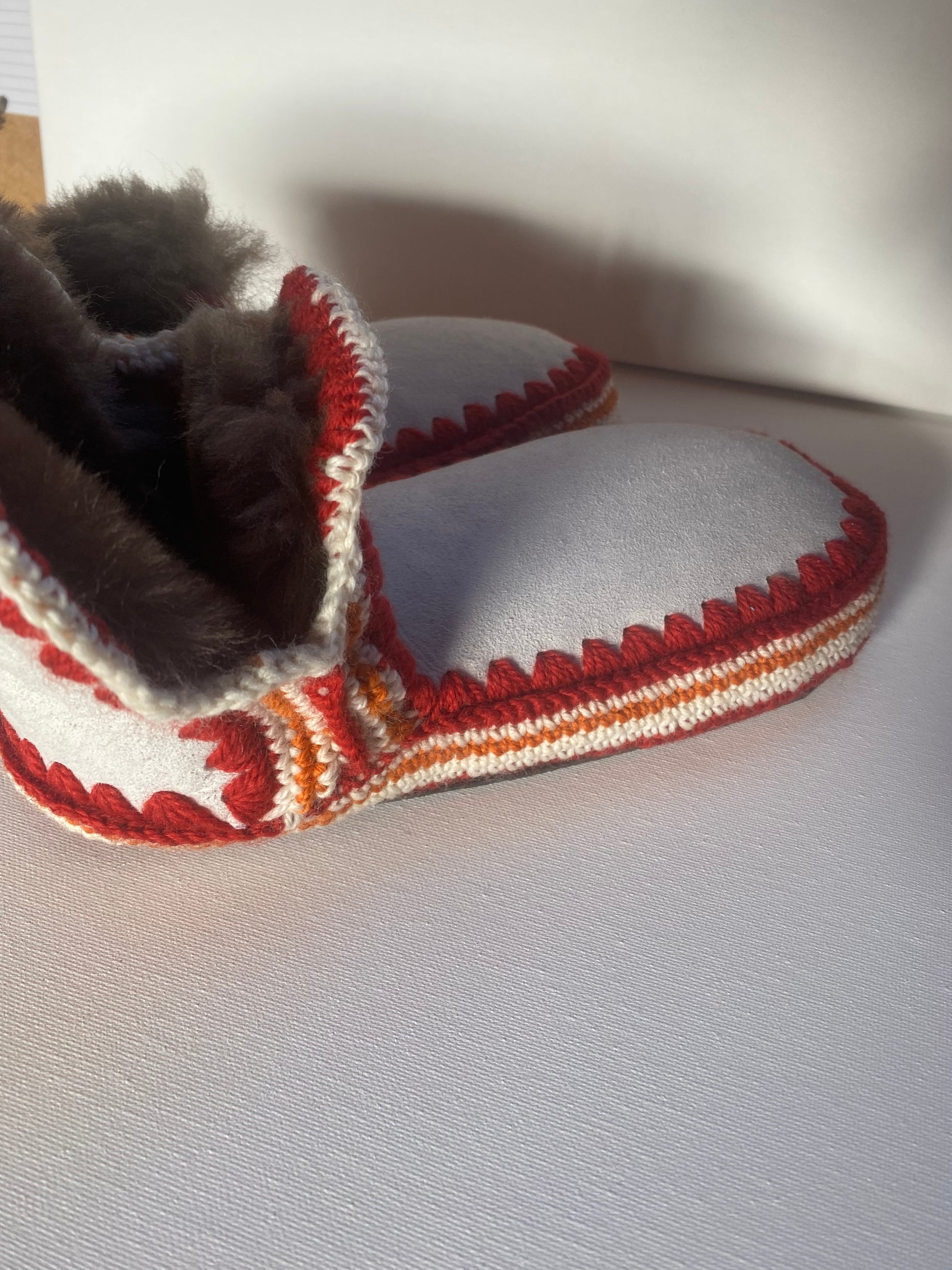 Red, Orange & Cream Sheepskin Slippers — Pre-Order.