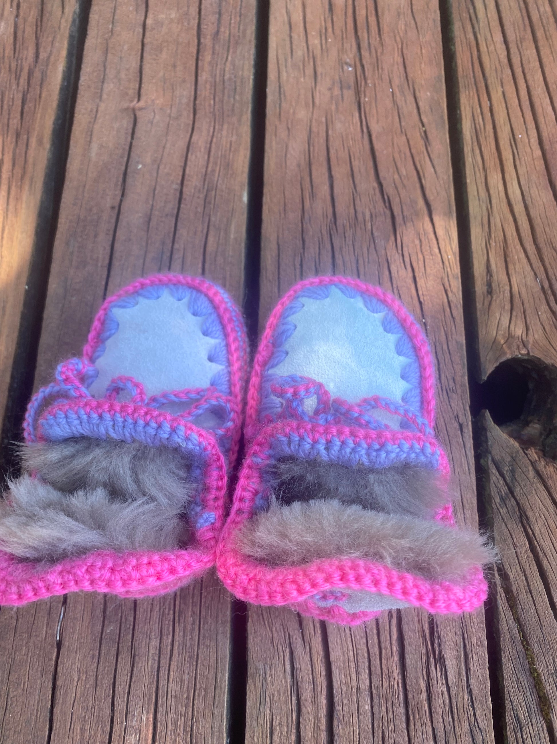 Snuggly Size 1 pairs roughly measure 11.5cm to 12cm max on the sheepskin sole.